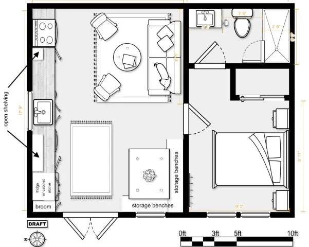 This new-build ADU was thoughtfully designed from the ground up to complement the look and feel of the 1898 farmhouse it sits behind. As part of our new-build interior design services, we handled everything from the initial floor plan to material and fixture selections, ensuring design intent was carried through with construction management support. The space was then fully furnished and styled through our full-service home furnishing offering, creating a welcoming and functional Airbnb ready for guests.